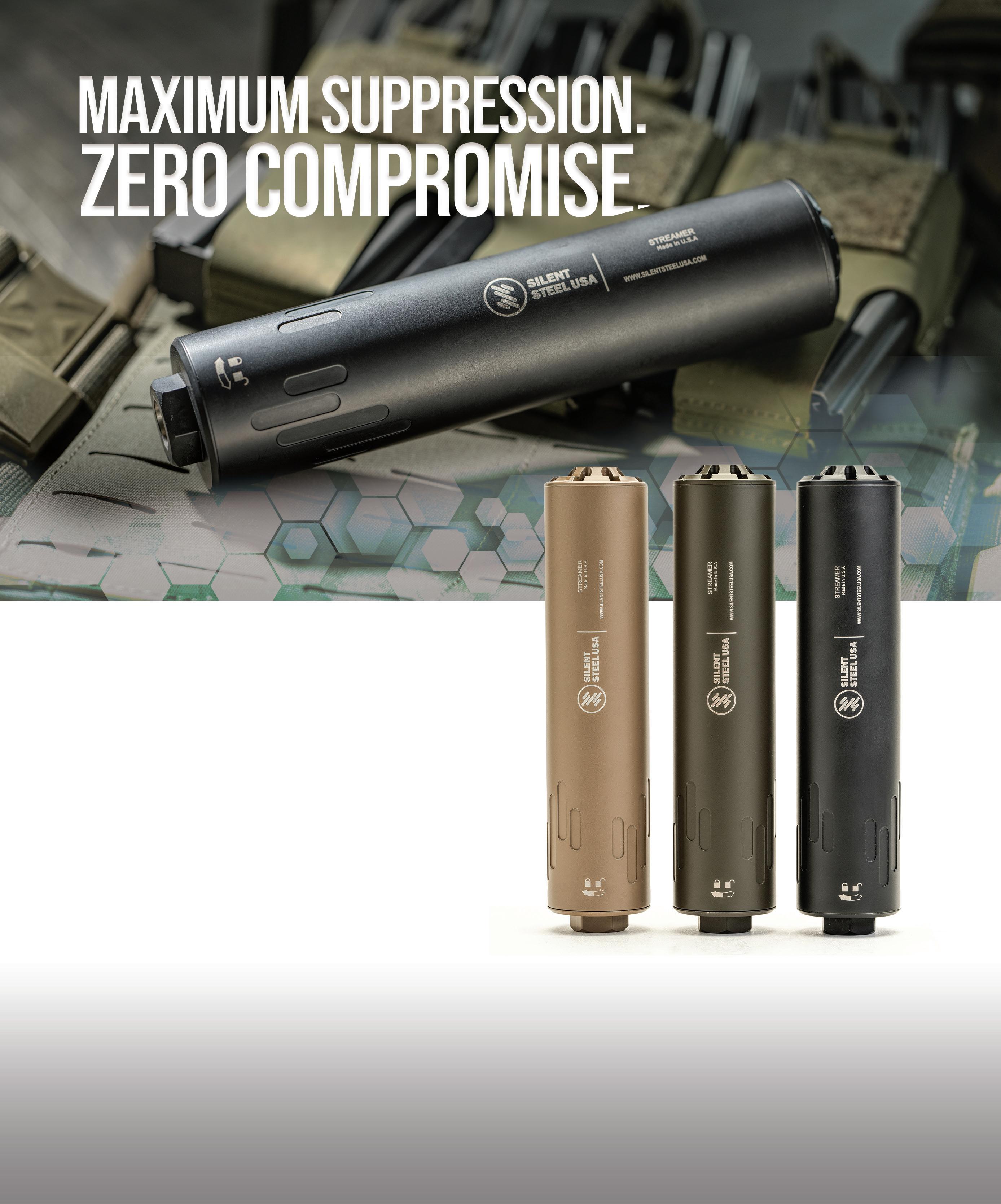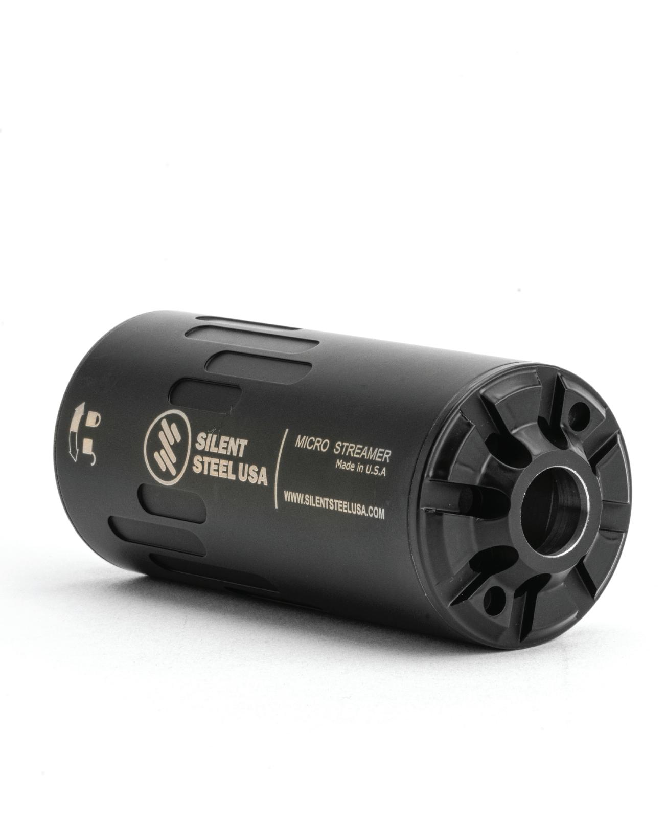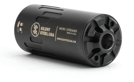 The Silent Steel USA Micro Streamer is the ultimate minimalist suppressor for shooters who demand maximum maneuverability with minimal footprint. Despite its ultra-compact size, it features advanced FLOW-IQ technology that reduces gas blowback and softens recoil, enhancing comfort and control. Ideal for SBRs, PDWs, and fast-moving tactical setups, the Micro Streamer delivers reliable suppression in a small, streamlined package without compromising durability or performance. SRP: $999.