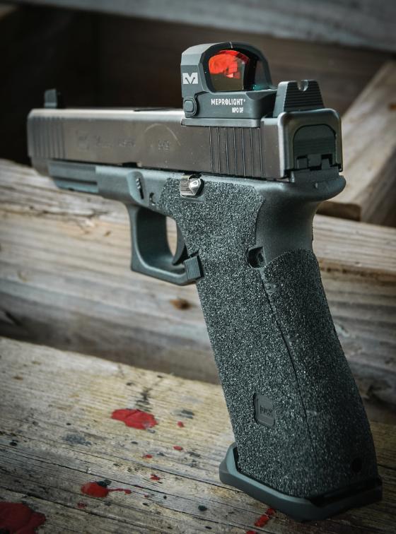 ← Recover Tactical’s 20/20 stabilizer kit is an inexpensive, durable glass-reinforced polymer system designed to fit a GLOCK.