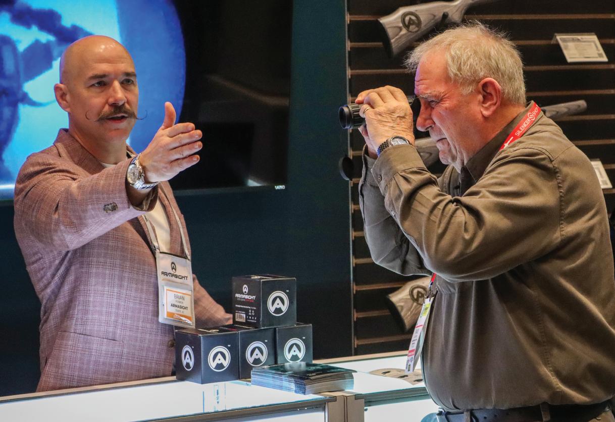 A 1-3x ocular magnifier provides optical magnification of the 2560×2560 round AMOLED display inside the eyepiece. The Vision+ system pairs this high-resolution display with a 15 mK NETD sensor for an incredibly detailed and precise image. The 1,300-yard-capable laser rangefinder on the ACE is integrated directly into the 50mm germanium objective lens. In addition to streamlining the body design and reducing bulk, this allows for improved horizontal alignment of the infrared laser with the viewing system. SRP: $7,999. Booth #70131 irayusa.com 7