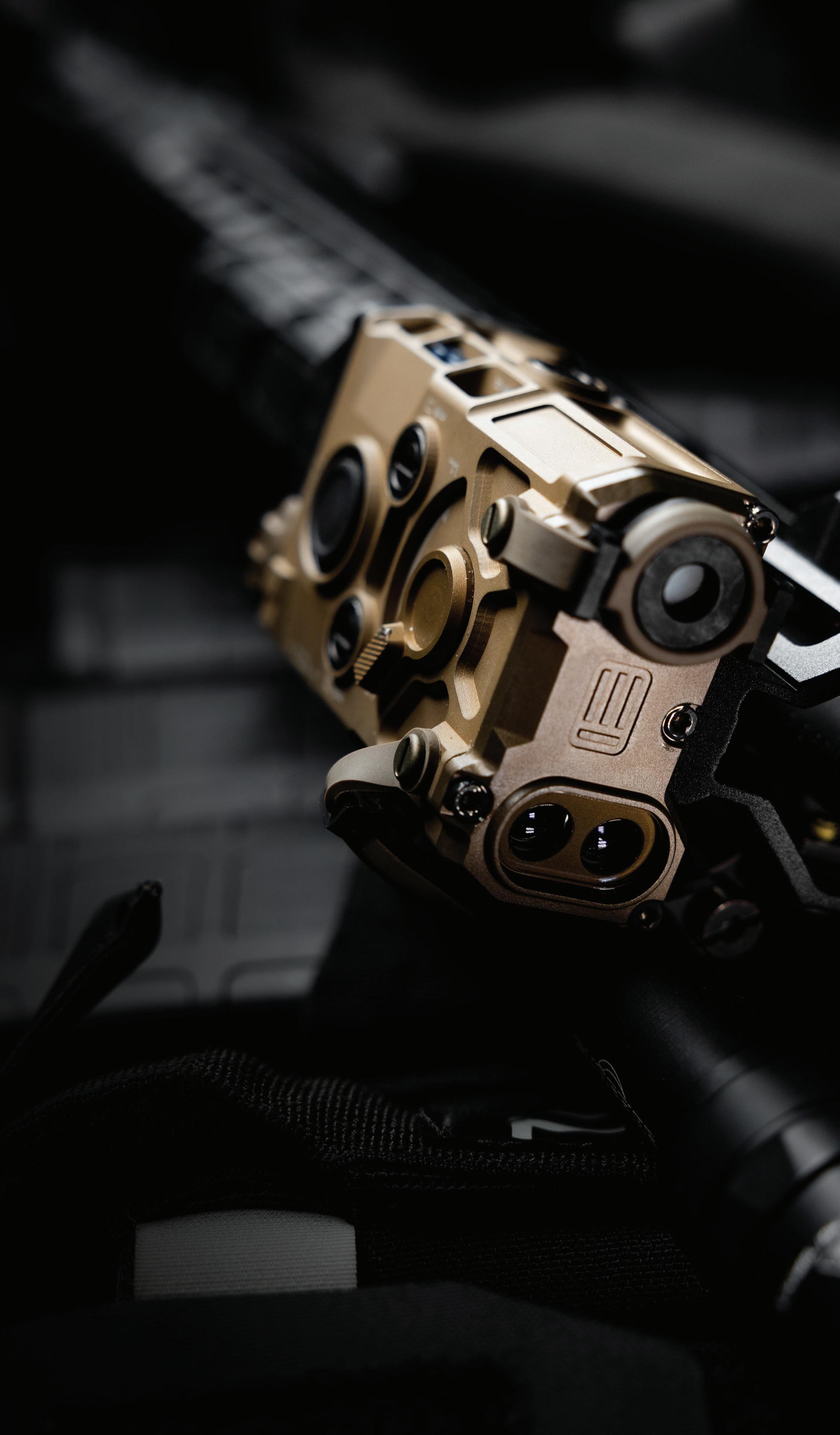 The ATLAS features a five-emitter system—including a visible laser, near-infrared (NIR) laser, long-range VCSEL illuminator, and two NIR LED illuminators—providing exceptional capability across CQB, midrange, and extended-range engagements. With co-aligned lasers and illuminators using a single set of adjusters, operators benefit from fast, reliable zeroing and consistent co-alignment retention. The ATLAS also offers best-in-class ergonomics, including a low-profile integrated mount for seamless compatibility with standard optics, a five-position mode switch, and three tactile buttons positioned for natural handling. Ambidextrous controls ensure decisive operation for both leftand right-handed users, even when wearing gloves.