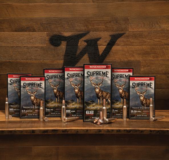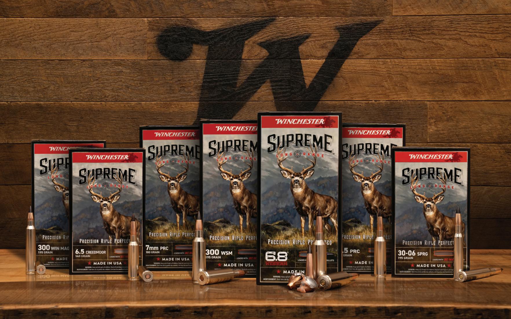 New Supreme Long Range rifle ammunition is available in 6.5 Creedmoor, 6.5 PRC, 6.8 Western, .308 Winchester, .30-06, .300 WSM, and .300 Winchester Magnum. SRP: $45.99 to $69.99, per 20. Booth #11831 winchester.com