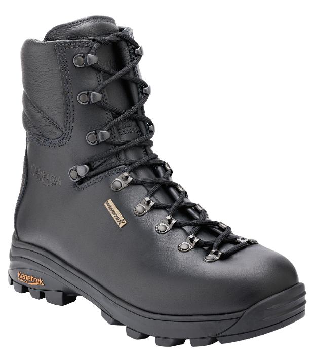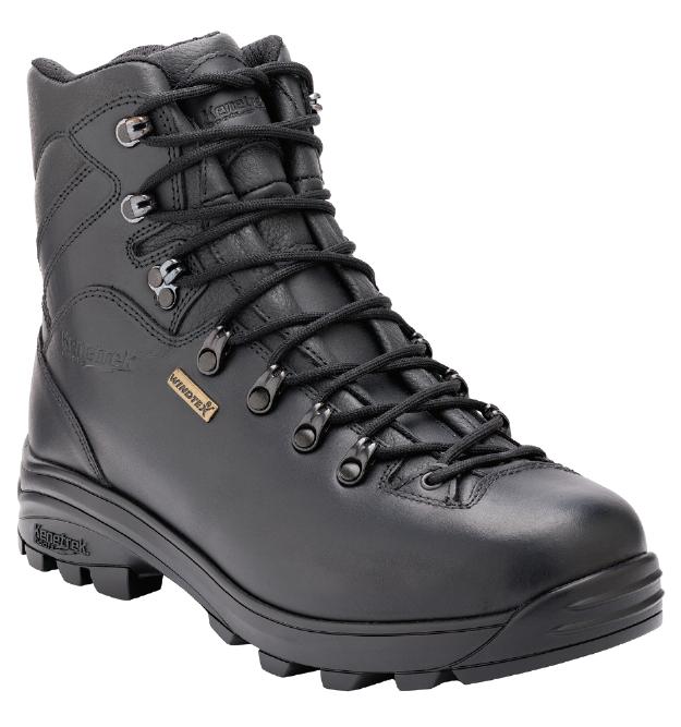 Whether in full pursuit, driving down the road, or on your feet all day, these very light, black tactical style boots are designed for a 24/7 workout. The padded collars and special flex notch gives you high-top tennis shoe comfort built on our mountain hunting boot support system. The 8” Hard Tactical features an all leather vamp with no seams down the tongue or choose the 7” SlideRock Black for an even lighter athletic feel. Both offer shineable black leather and high traction Kenetrek Grapon™ outsole.