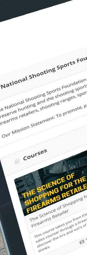 NSSF’s SHOT University™ Online is a onestop e-learning platform for firearms retailers and ranges. On-demand and free for NSSF® members, this new library of interactive online courses provides a deep-dive on critical topics ranging from compliance and regulatory issues to operational guidance and business improvement for both business owners and employees.