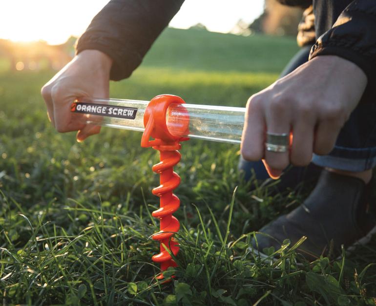 The innovative Orange Screw ground anchors from Nite Ize ensure reliable anchoring in virtually any terrain and are a durable alternative to traditional tent stakes and anchoring devices. These anchors are available in two sizes: 12.25 inches for tents, canopies, and heavy-duty gear, and 9.5 inches for smaller tents, tarps, and lighter gear.