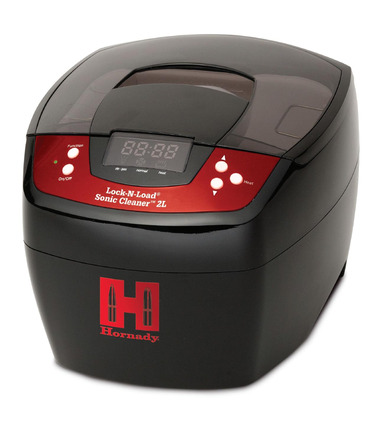 The Hornady Lock-N-Load Sonic Cleaner 2L features an 80-watt ceramic heater that enhances cleaning action. The large two-liter stainless-steel tank holds up to 300 .223 cases or 150 .308 cases, driving efficiency and productivity. The cleaner’s 5- to 30-minute timer allows multiple cycle options, depending on the application.