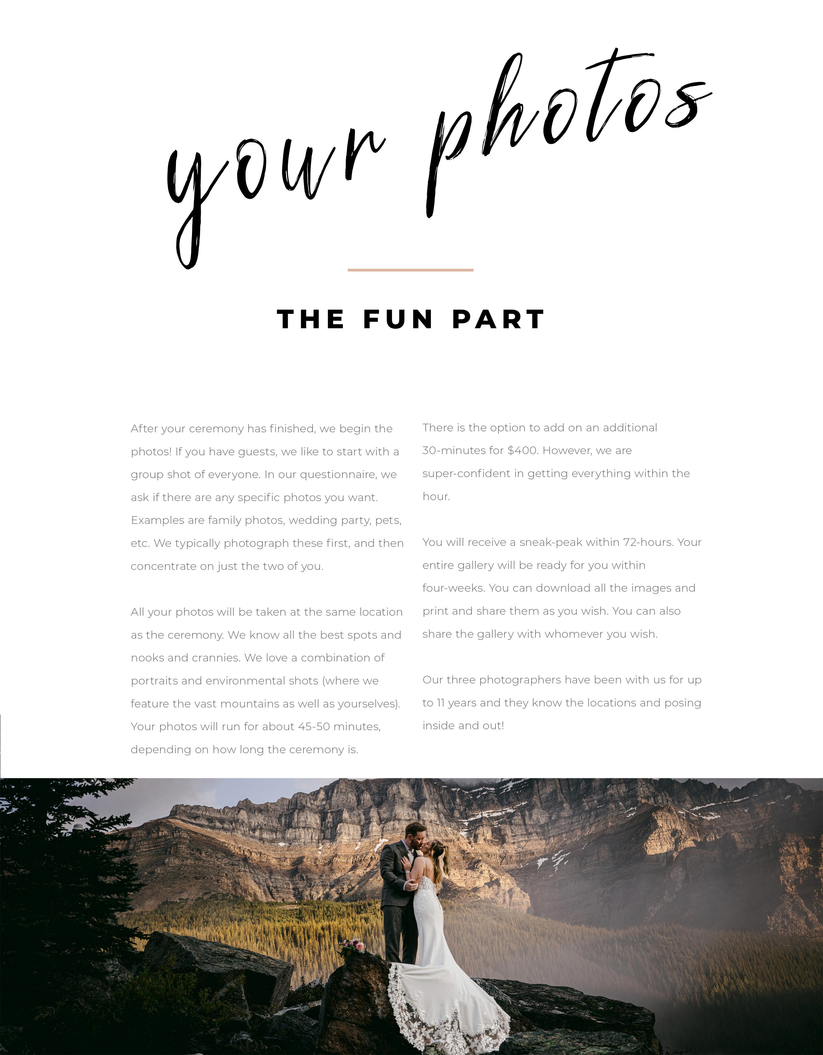 We wanted to keep our packages streamlined. simple. affordable and fun. So. we offer one package that gets you married in a stunning location and with beautiful photos.