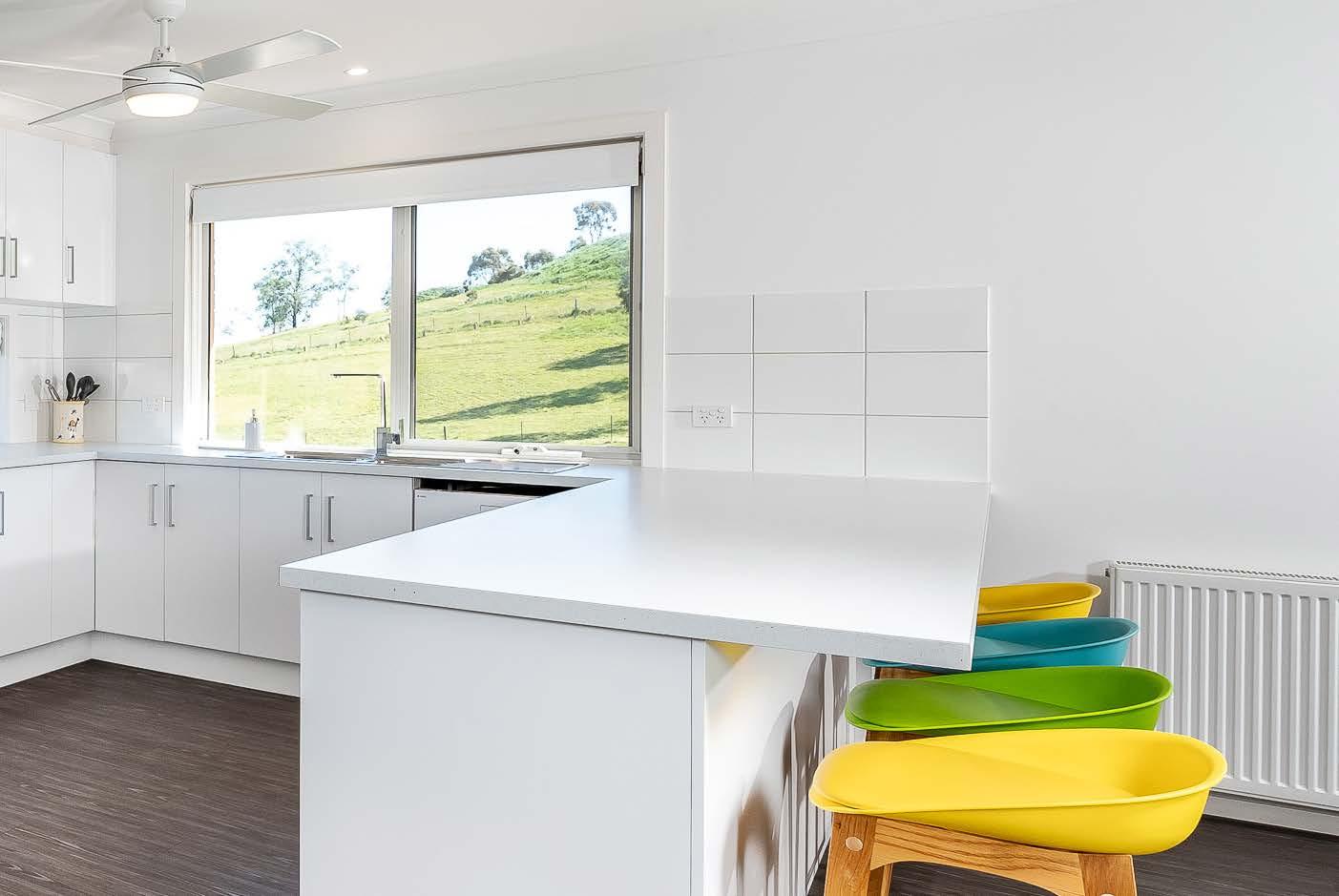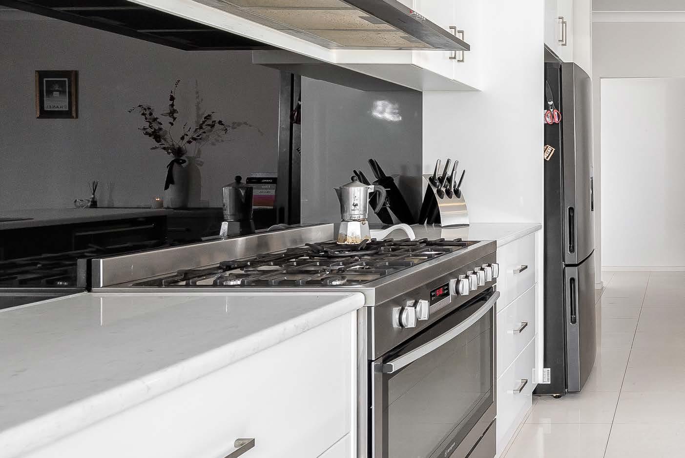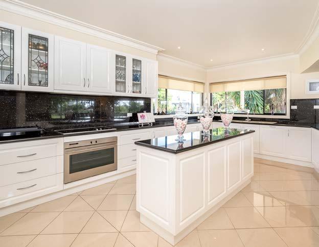 The kitchen has been designed for the entertainer and offers 60ml waterfall stone benches.