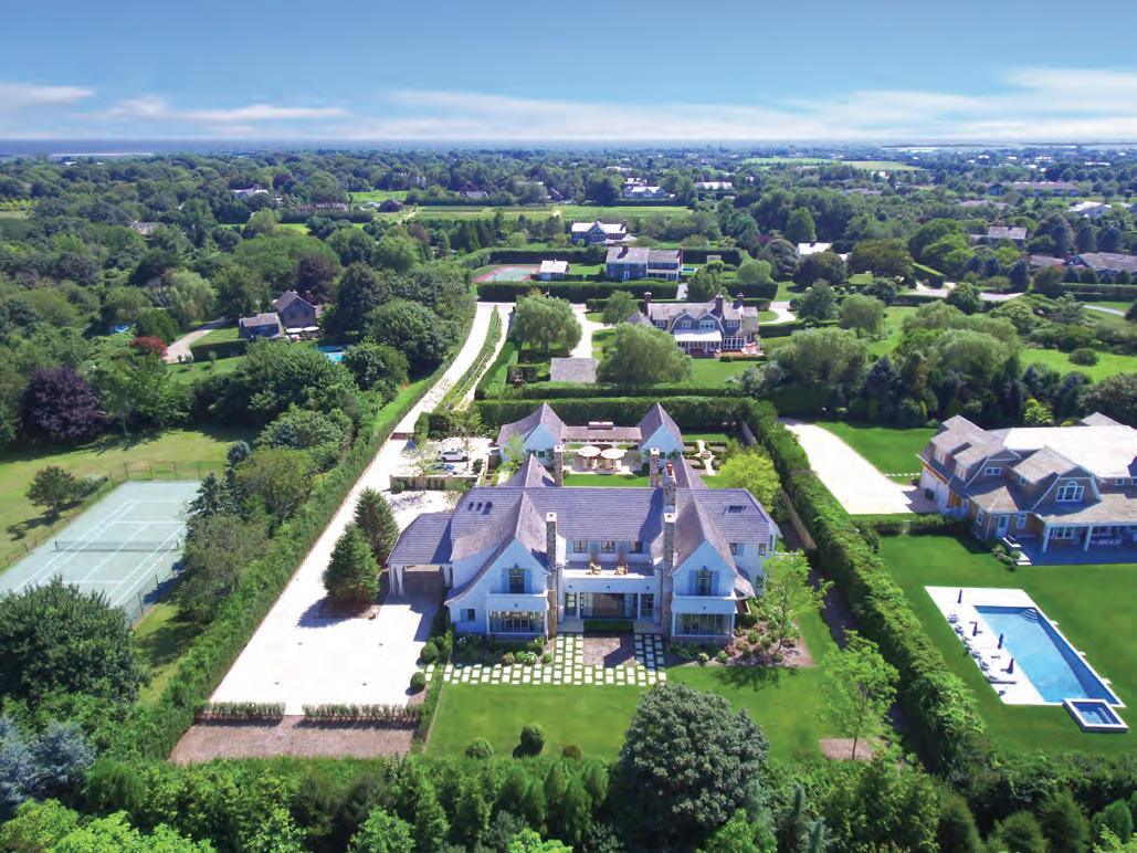 The final touches for completion of this beautiful country home with stunning details by architectural team Martin Architects and the talented James Krapp of studio PPark, as well as Ciuffo custom Cabinetry throughout. Building execution is by the high-end custom builder Koral Brothers Builders and this beautifully positioned home on a 2.2-acre estate parcel featuring mature trees and layers of perimeter landscaping. The expansive residence offers over 12,000 SF of spacious living interiors throughout the three floors. Features include 9 principal bedrooms each, en-suite, a grand primary suite with two separate bathrooms and office. The first-floor guest suite is a private enclave unto itself with access to the rear terrace and garden. There are 3 additional bedrooms each with bathrooms on the first and lower level floors. Upon entering the dramatic foyer that opens to a vaulted ceiling living room with a wall of glass looking out to the swimming pool, spa, pool house, garden, great lawn and tennis court. The volume and light permeates throughout the interiors and flows to the 75’ terrace. Enjoy a large kitchen/lounge space, adjacent family room, chef’s kitchen and library/office on the main floors while the elevator takes you to the second floor and lower level gym with adjoining full bath, sauna, options for theater, additional wellness and wine storage. Outside, indulge in a 50’ pool with spa, pool house, firepit, tennis court, and a 2-car garage. This is resort-style living at the highest level a most prime estate section location. $35,000,000 WEB# 921004