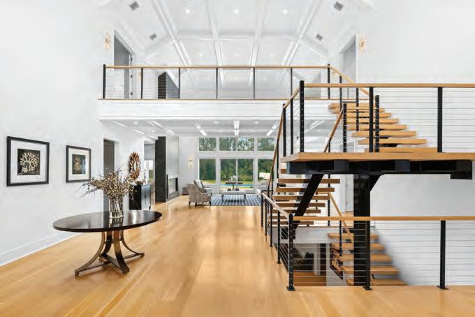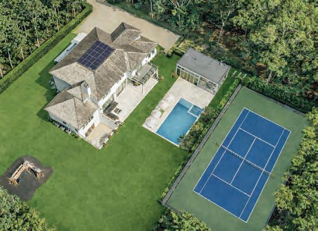 Set on 1.83 acres in Water Mill’s coveted horse country, this eight-bedroom, 9.5-bath industrial modern barn—designed and built by celebrity restaurateur William Jack Degel—offers a striking blend of bold architecture and resort-style living. The outdoor oasis features 2,000 square feet of covered living space with a full kitchen, bar, lounge, fireplace, and dining area, ideal for entertaining. A private vineyard planted with Wolffer grapes adds a distinctive touch, while the 50’ x 20’ heated gunite saltwater pool with raised spa, sunken all-weather pickleball court, and extensive landscaping create a secluded retreat. Inside, the main level showcases a state-ofthe-art kitchen, expansive great room, formal dining area, white oak flooring, and dramatic imported marble fireplaces. A first-floor primary suite includes its own IPE wood-covered outdoor living room. The attached three-car garage is outfitted with custom wood doors, heated porcelain tile floors, cabinetry, and a pet bathing station. Upstairs, a second primary suite offers a fireplace, dressing room, soaking tub, and separate shower, complemented by four additional en-suite bedrooms, an office, guest lounge with wet bar, and a second laundry room. The finished lower level provides exceptional lifestyle amenities, including a 110-inch home theater, wine and whiskey cellar, full gym, billiards area, wet bar, steam shower, sauna, staff bunkroom, and an additional king bedroom with full bath.