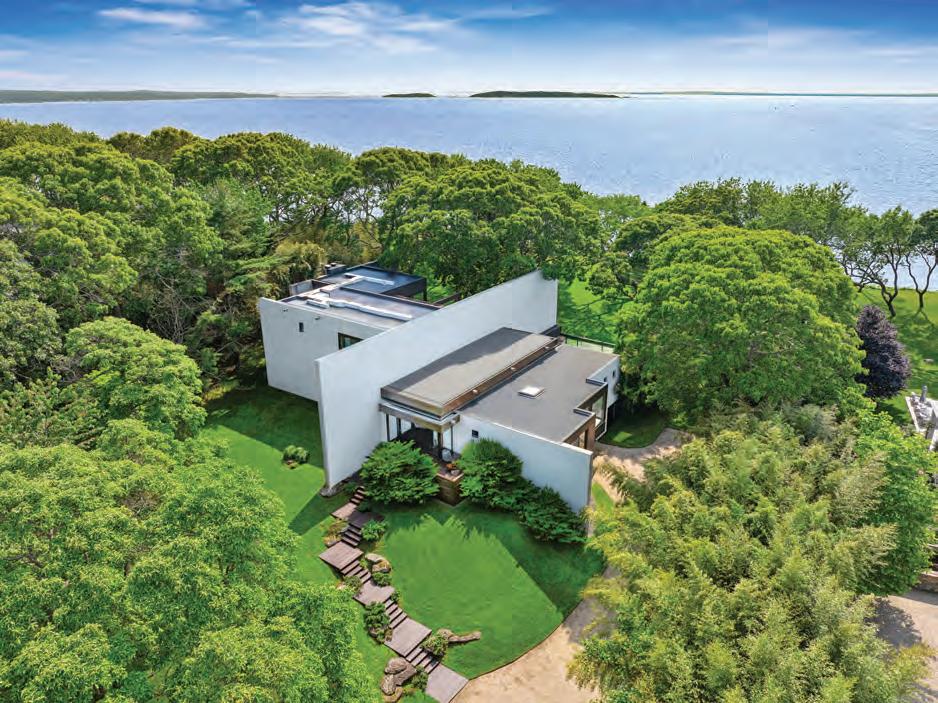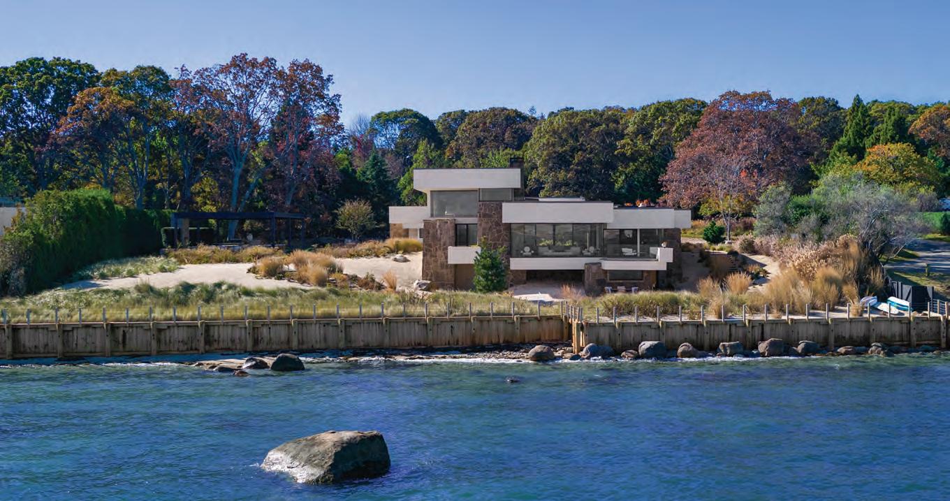 4 BR, 5.5 BA | This modern residence offers stunning south-facing water views over West Neck Bay. Designed to maximize its prime setting. Features an open floor plan with expansive living spaces and a heated gunite pool. Web# 421198