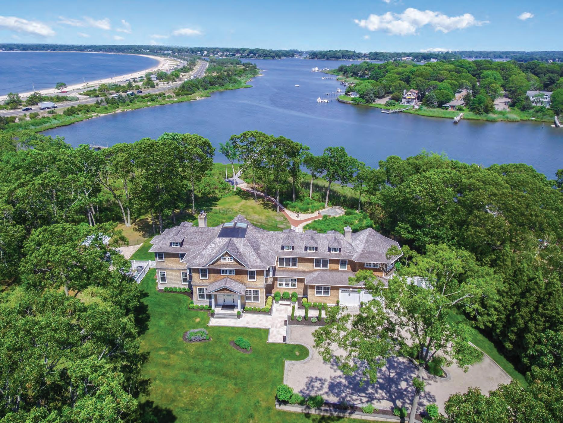 Shelter Island. The charming 200-acre, seaside Village of Dering Harbor with just 35 homes has been dubbed “The mallest illage in New York . And in the heart of this quaint illage is Oriole Farm which, once the private arboretum and gardens of famed horticulturist Alice Fiske, is now home to a new Shelter Island in a privileged setting. The sprawling, six park-like acre estate is a brilliant collaboration between Barnes Coy Architects and Edmund D Hollander Landscape Design. The intriguing stone and stucco residence incorporates ,000 square feet of fnely articulated living space on three levels. The two-story entry hall leads to the living room under beamed ceilings with beautifully fnished white oak fooring, a freplace and intimate dining alcove. The chef’s kitchen, equipped with iking and other professional appliances, statuary marble countertops, center island seating and a breakfast table overlooking the grounds. opens to its own family room with freplace. The ground foor master suite offers a large sleeping chamber with cathedral ceilings, dual walk-in closets and a spa-like French limestone bathroom with steam shower. Adjacent to the master suite is a paneled library/offce with freplace and private terrace. Four additional bedroom suites, one with a sleeping porch, an offce, and a laundry room await on the second foor. The fnished lower level offers a media room with a freplace, gym, playroom, wine room, laundry room, and a full bath with steam shower. Multiple covered terraces adorn the outside of the house highlighted by a large, covered porch with freplace, all overlooking the manicured lawns and lush plantings. The 55-ft Gunite pool spa with pergola sits next to an enchanting ord Burnham greenhouse, used as a pool cabana and dining atrium, all braced by an allee of 100-year-old weeping beech trees and specimen plantings. Privacy is absolute and assured by over a quarter mile of 80-year-old beech hedge. There is ample room for tennis and the detached 3 car garage could be fnished to provide additional living space. The home boasts energy effcient state of the art geothermal heating and air conditioning with a redundant traditional boiler system. An ambitious new owner might inquire about the opportunity to own an additional 8 acres of contiguous property. This sublime property sits across the street from Gardiner’s Bay Country Club and is within easy walking distance to beaches and the quaint waterfront commercial district with its multiple shops and restaurants. ith easy access to both the North and outh Forks as well as proximity to the shops and various restaurants that dot the 2 square mile island oasis, this singular new offering deserves your attention today. Exclusive. $5.95M WEB# 892822