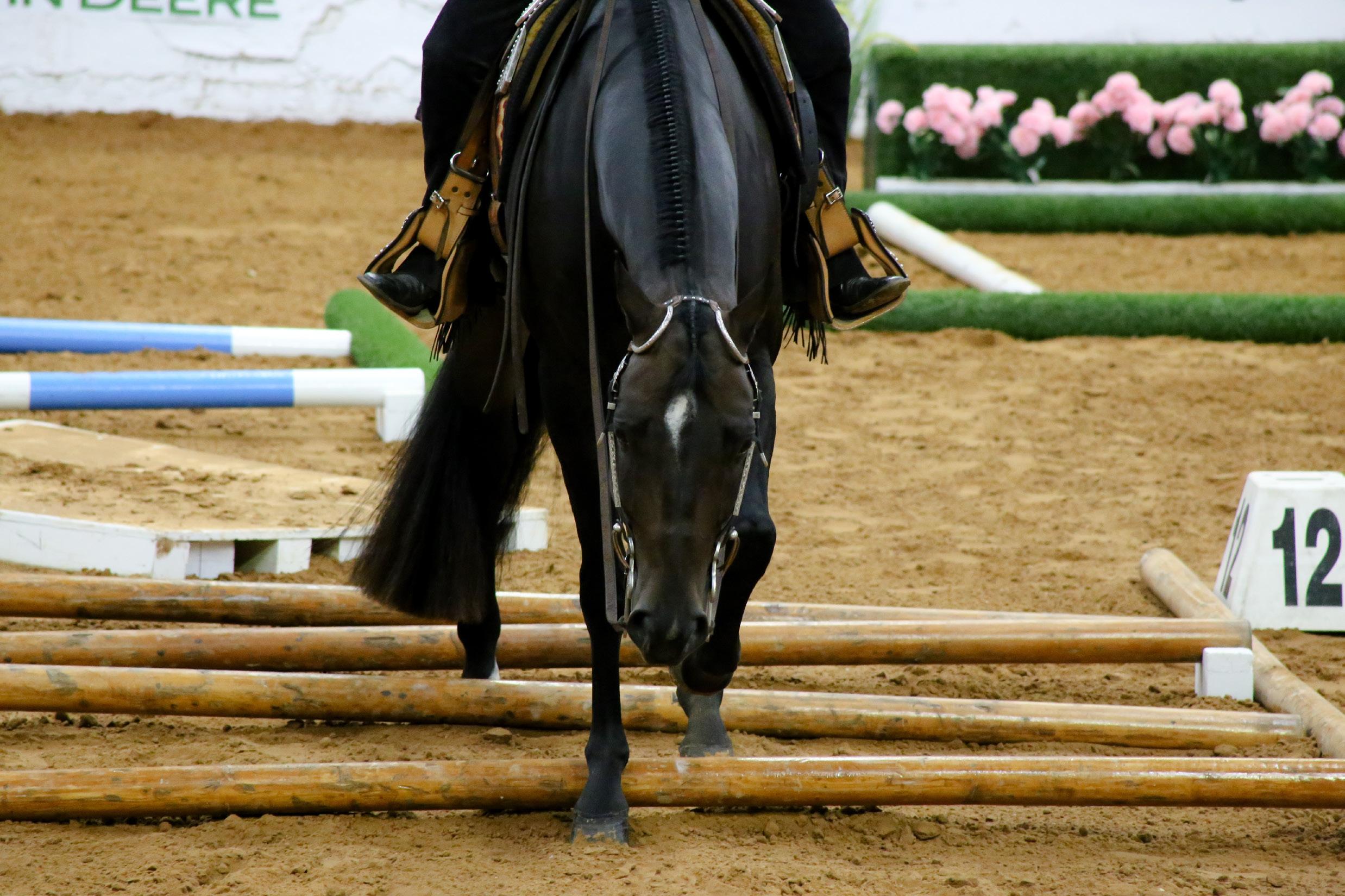Another problem associated with older horses is cheating. Horses who have the opportunity to cheat usually become cheaters. I try to eliminate these opportunities by preventing the horse’s anticipation of my cues. One principle I keep in my mind is the average horse needs correction or schooling in approximately one out of every three goes in the show arena. This may vary horse to horse but it is a good average. I rarely punish a horse severely in the show pen, people who punish harshly while showing develop horses who hate or dread classes. I use subtle corrections like, making the horse wait after the announcer calls for a lope, picking the horse up for collection and bridling, or waiting to reverse. In reining classes I may not change leads where the horse is expecting it or I may run them to the fence to stop. If your horse is cheating