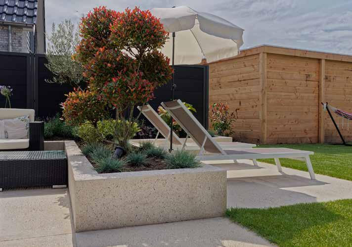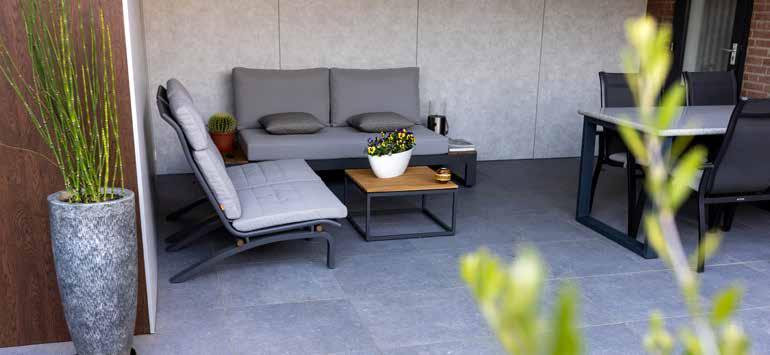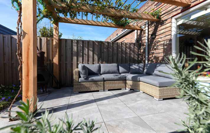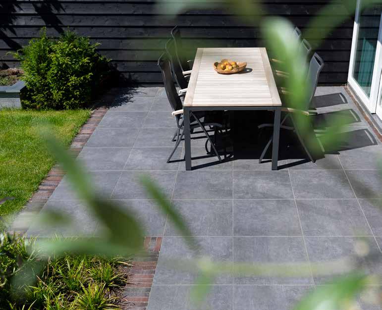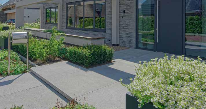 De Easyton Linea van Showtuin Heeten is een betontegel met facet en heeft een geborsteld en geimpegneerd oppervlak. Hierdoor voelt de betontegel zacht aan en is tevens zeer onderhoudsvriendelijk.