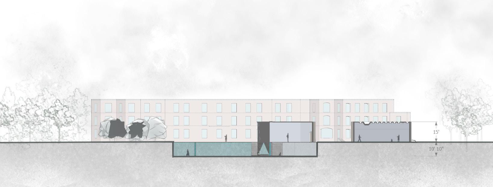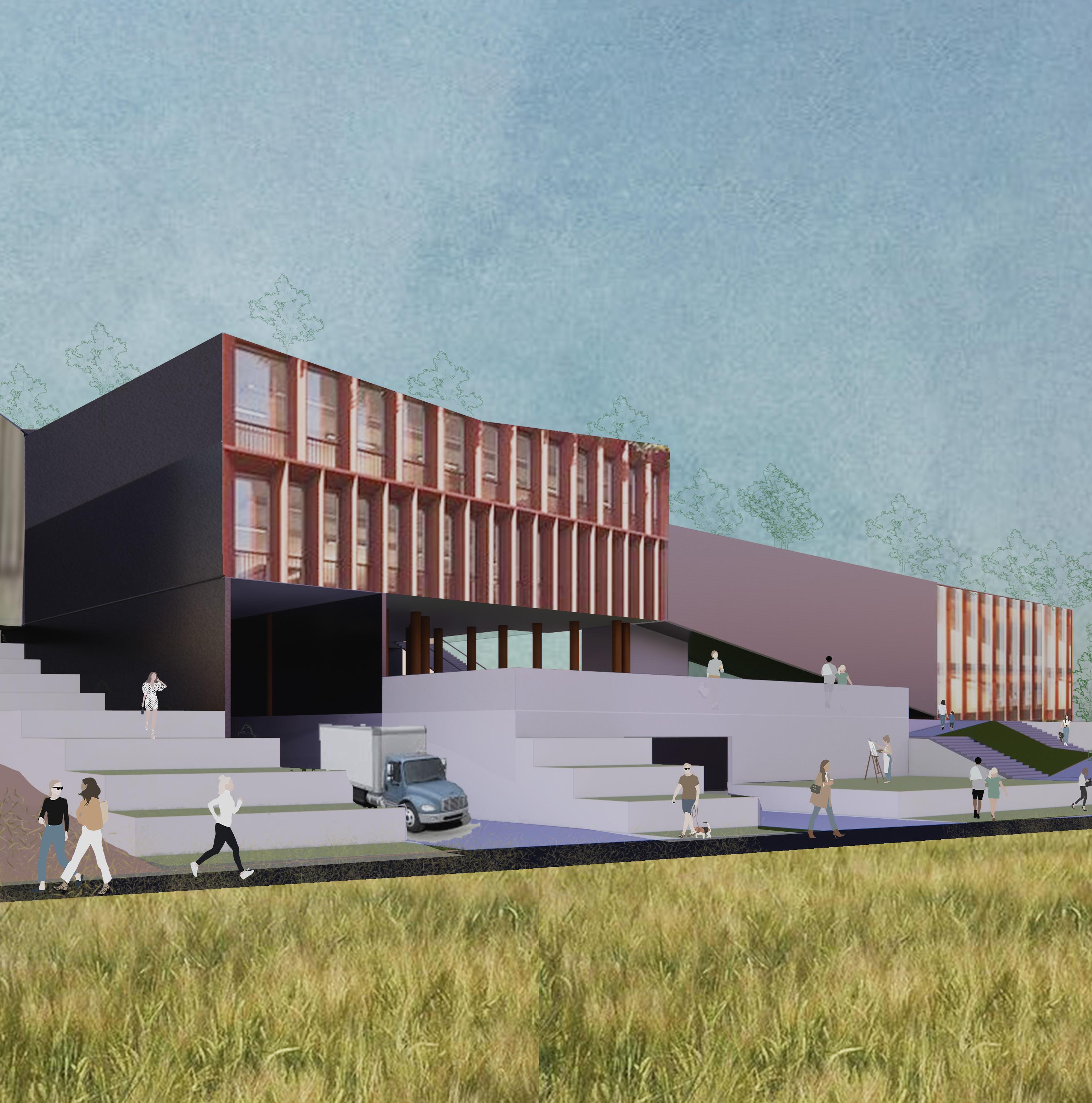 The re-creation factory is a paper recycling industry located in hattiban, lalitpur, uses waste papers to produce recycled paper and paper products. Along with the production, an experience centre is integrated in the design which educates people on recycling and upcycling papers through the experiencing of the paper crafts, furnitures and other products. This zone runs along the site connecting the factory and a coworking space for the public.