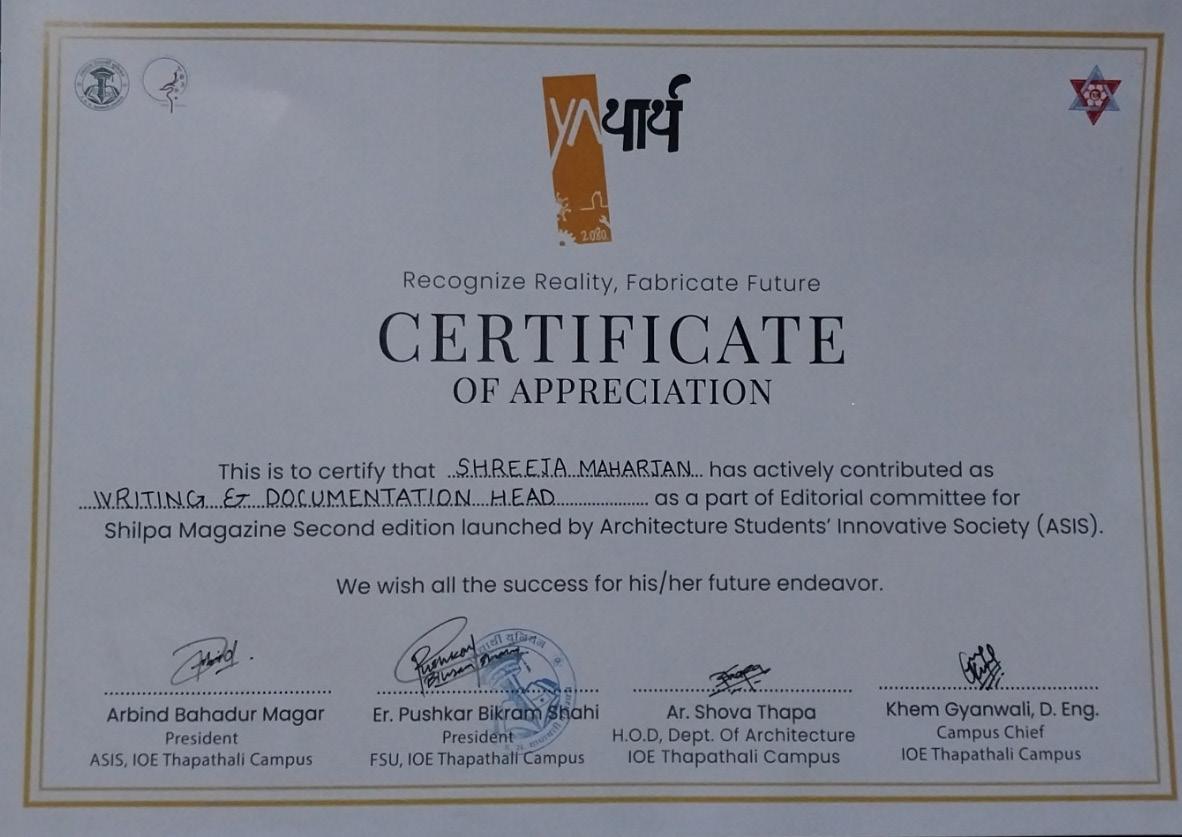 2021- Current Bachelors in Architecture in Thapathali Engineering Campus, Thapathali, Kathmandu