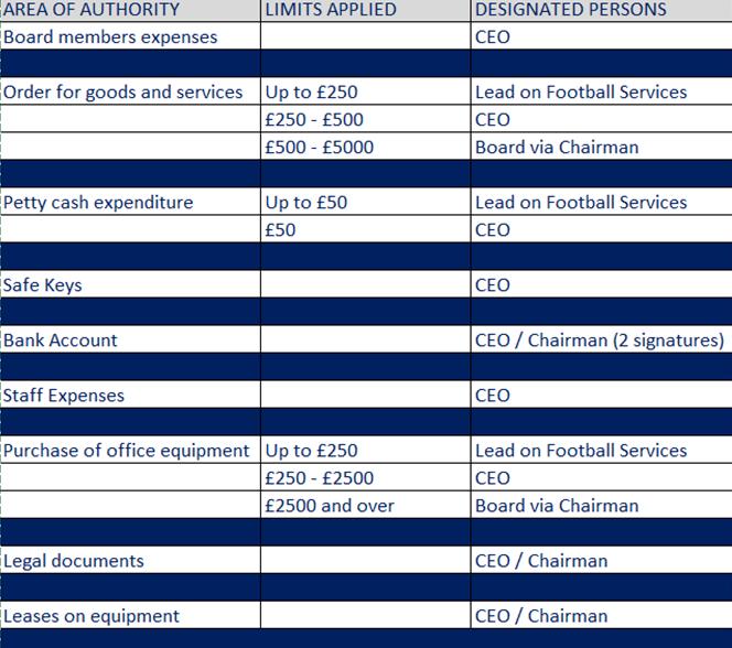 All staff who have a delegated authority will receive a formal letter outlining their limits. The staff member will be requested to sign and return their acceptance of this authority, and will need to provide a specimen signature for The Company’s records to Finance