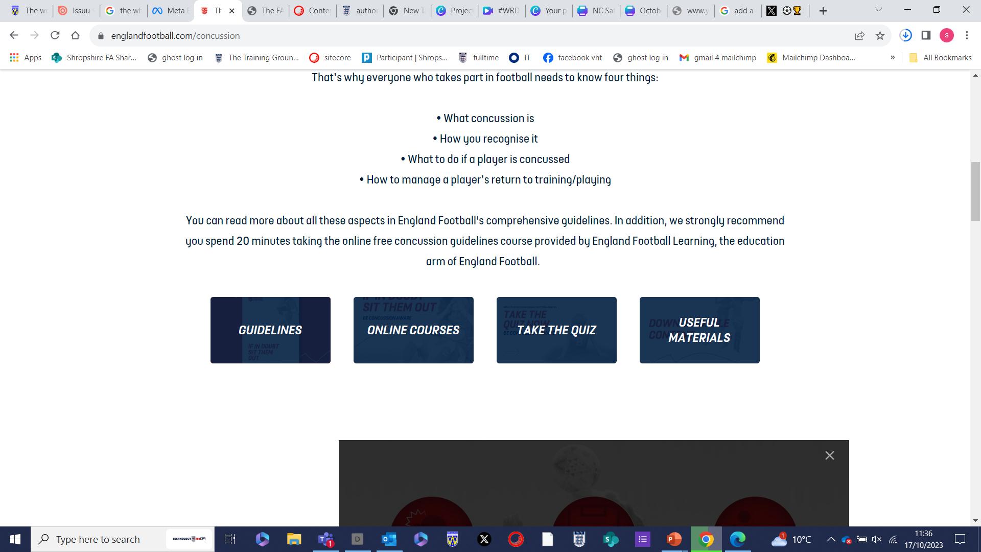 You can read more about all these aspects in England Football's comprehensive guidelines. In addition, we strongly recommend you spend 20 minutes taking the online free concussion guidelines course provided by England Football Learning, the education arm of England Football. .