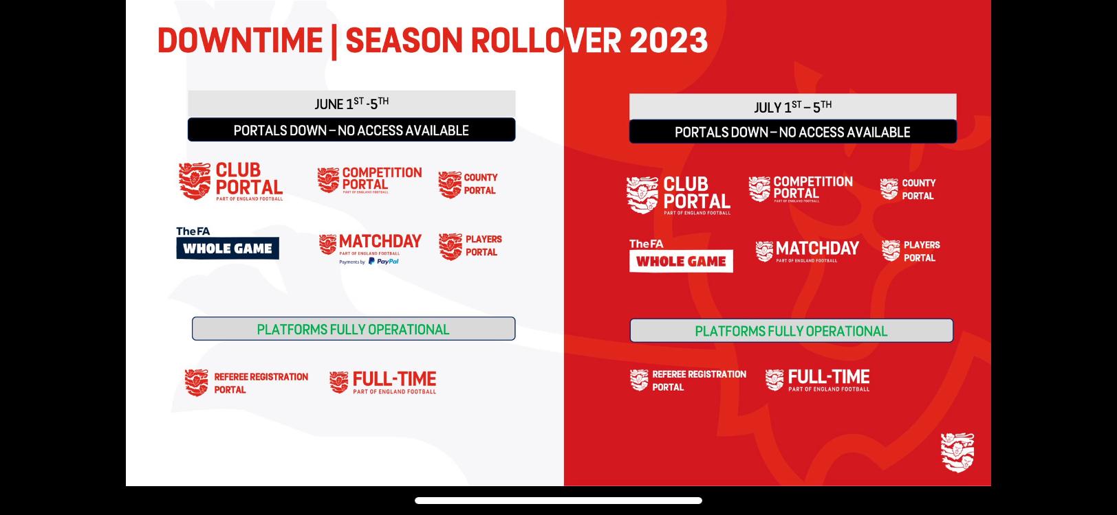 Many of our platforms will encounter some downtime as we move into season 23/24 and launch the new affiliation process in Club Portal.