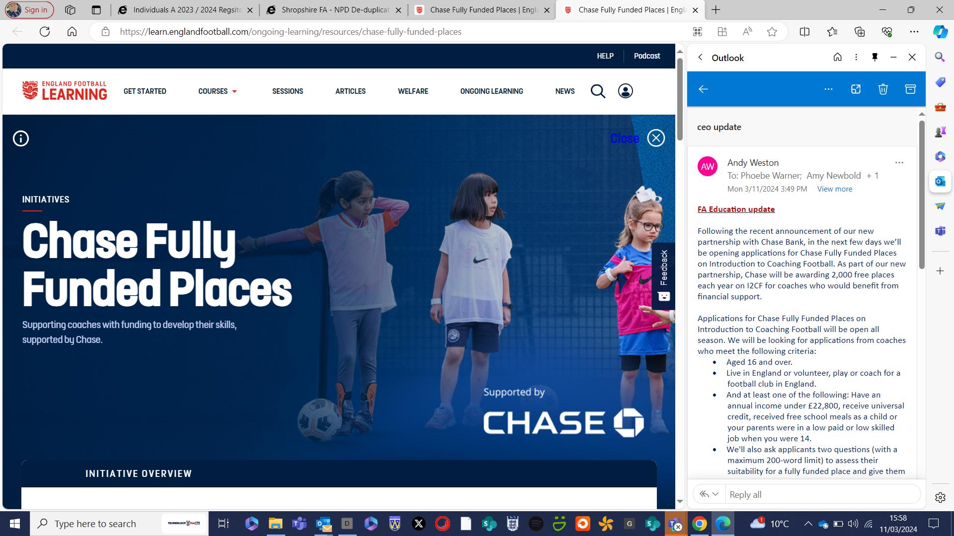 Chase fully funded places have been created to provide funding opportunities for coaches who would benefit from financial support towards completing either the Introduction to Coaching Football, UEFA B Licence or UEFA A Licence.