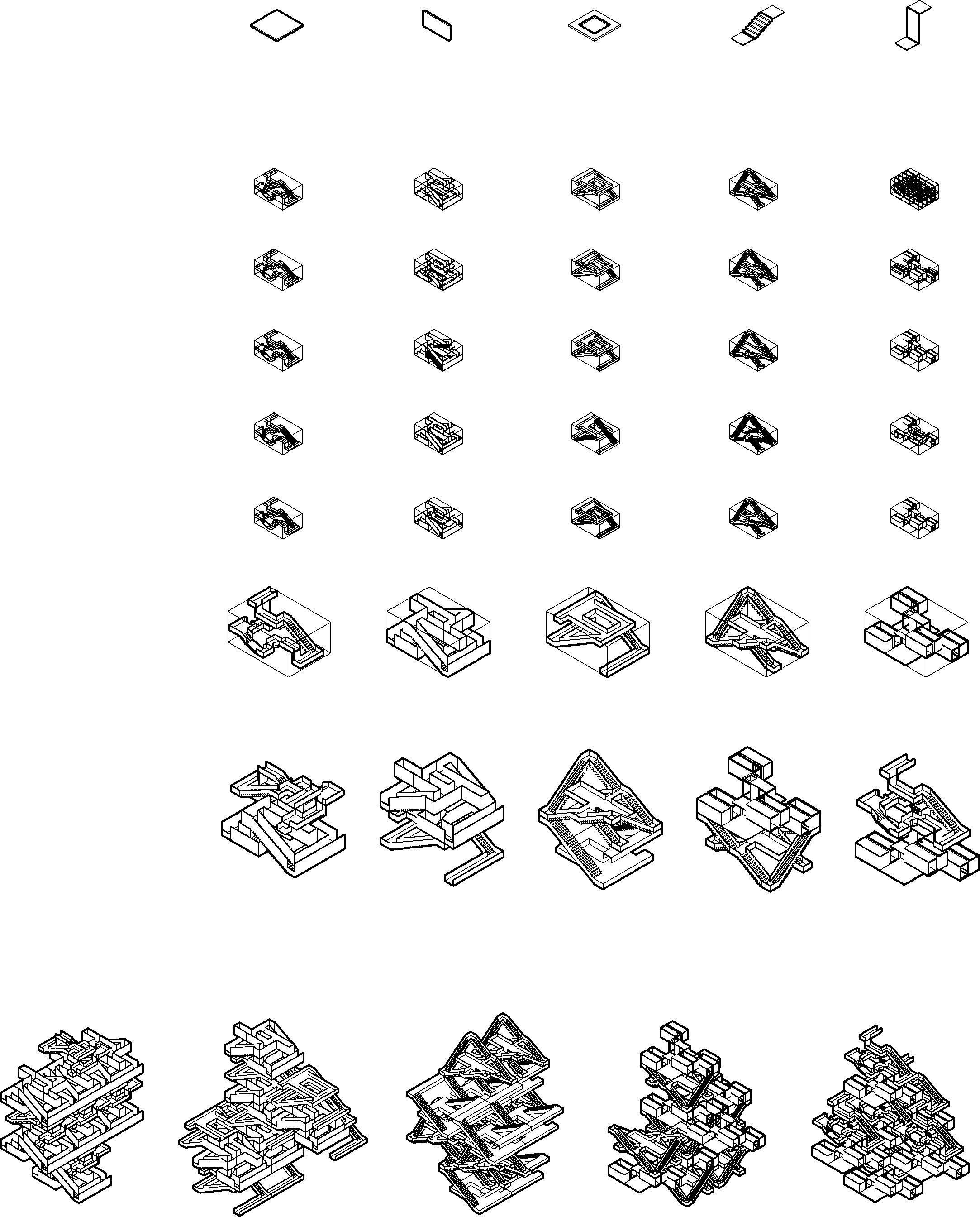 The unit as a whole consists of three main monoliths. The structure and form of each monomer is the same, and the three monomers enclose to form the device as a whole. The center of the device forms a triangular area, and bears the shelves and scanning table in the performance device.