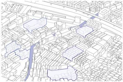 In this area, the original houses close to the railway were removed, and the low-rise shops were turned into a two-story commercial street. The first floor could also leave enough space and add vegetation to improve the environment.