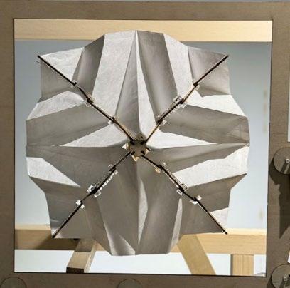 The transmission of the origami model adopts the unified deployment of roof motors, and the opening and closing is controlled by solar radiation and other procedures, so that users do not need to worry about additional lighting problems.