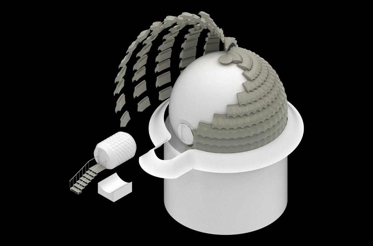 Mycelodome is a visionary concept for a rapid-deployment lunar habitat that merges innovation, sustainability, and resilience. This dome-shaped structure utilizes Mycolith—a newly researched material combining the strength of regolith and the flexibility of mycelium, offering the benefits of both as a concrete-like solution. Modular scales crafted from Mycolith provide exceptional protection against radiation and micrometeorite impacts while addressing the challenges of the Moon’s extreme environment.