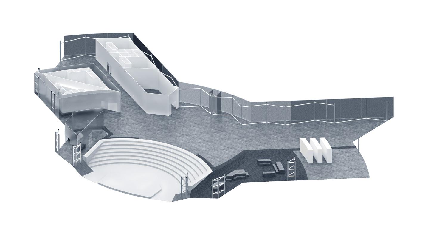 This Project takes its inspiration from the space and structure of a tree canopy. Located in a park along a canal, the project envisions a place for young people to gather after school and on weekends to engage in a variety of activities.