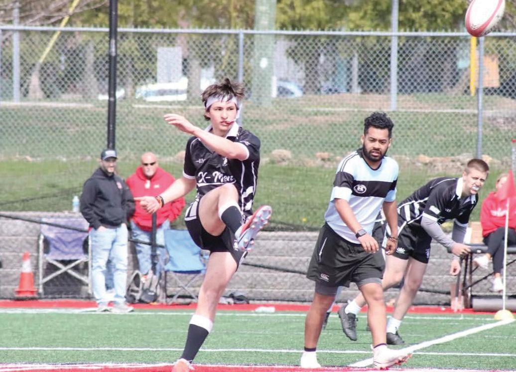 The X-Men send the ball downfield with a kick during open play at the Peter DeSalvo Memorial Tournament.