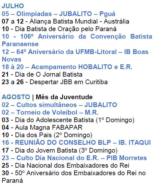 Mcm no templo 15:00h – assembléia Mensageiras do Rei 18:00h SIBJovem – 19:30h