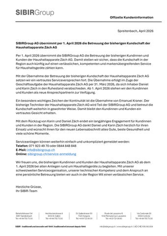 SIBIR wurde 1944 mit dem Ziel gegründet, erstmals einen Volkskühlschrank zu produzieren. Heute bietet Ihnen die SIBIRGroup, Tochtergesellschaft der V-ZUG AG, von der Küche über den Waschraum bis hin zum Ofen und der Entsorgung ein breites Spektrum an Produkten und Allmarken-Services. Alles aus einer Hand und das flächendeckend in der ganzen Schweiz.