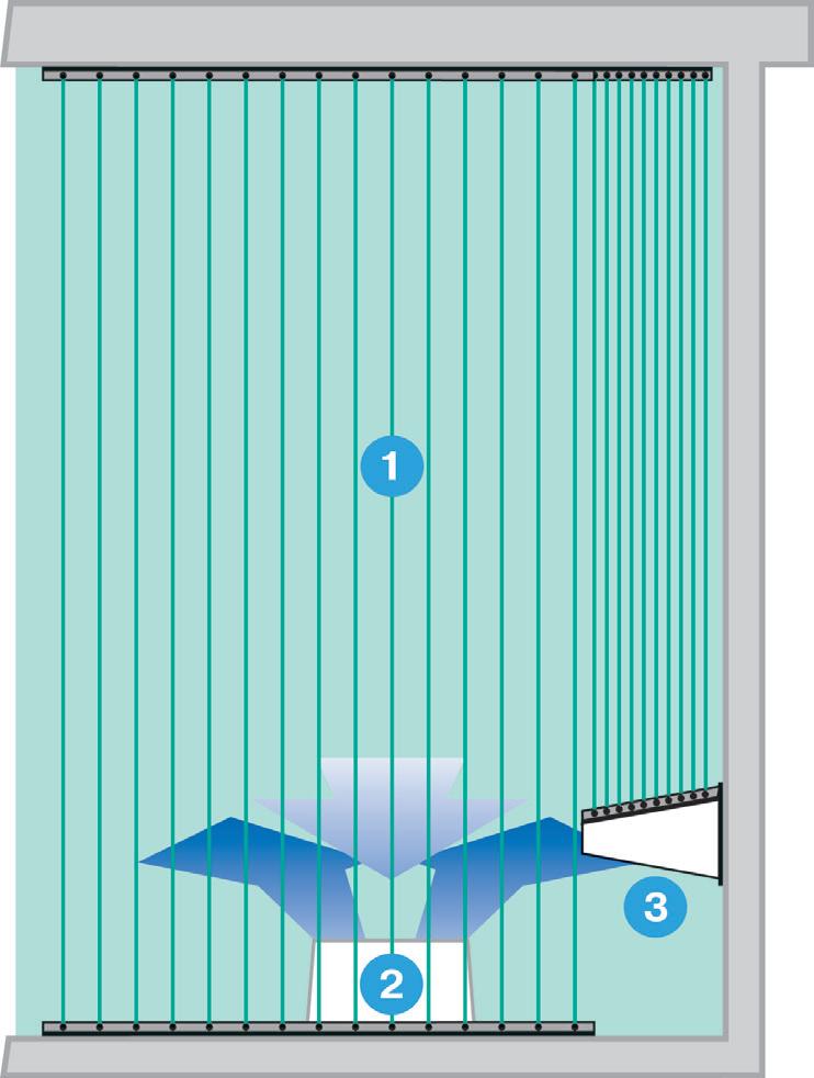 • Grosse Trockenluftmengen, die bis zu 10 m weit in den Raum reichen