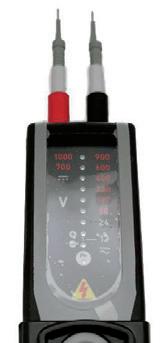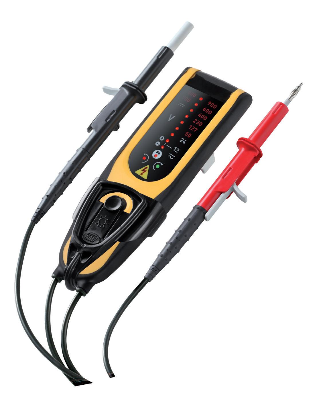 - le contrôle des niveaux de tension de 12 à 900 V en alternatif, 1000 V en continu (suivant modèle), - le contrôle de continuité d’un circuit hors tension, - le repérage unipolaire de la phase, - la recherche des polarités d’un circuit en courant continu, - et en fonction du modèle, le contrôle du sens de rotation de phase en mode bipolaire.