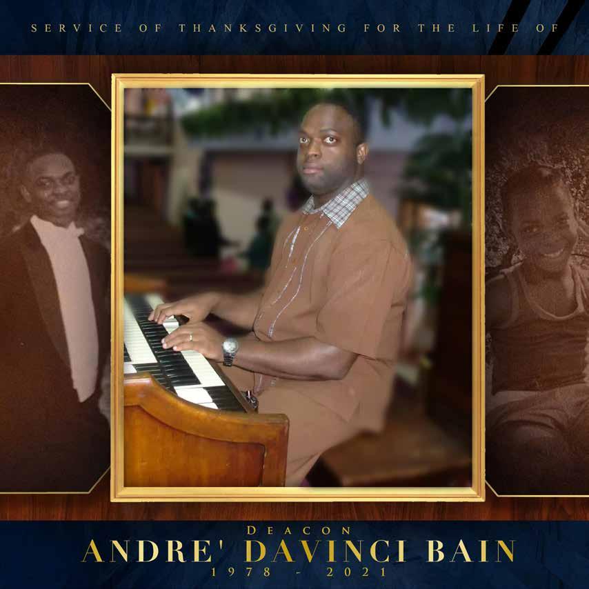 It was a warm, sunny Wednesday afternoon when the atmosphere was permanently changed on August 30, 1978. The Bain family had announced the arrival of a bouncing baby born to ‘Arie’ at the Princess Margaret Hospital. She proudly welcomed her second child and only son into the world. She named and later christened him, Andre’ Davinci Bain. His mother reared and nurtured him in the fear and admonition of the Lord.