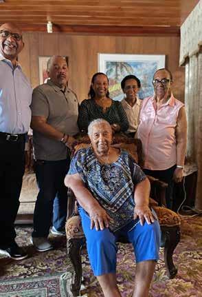 Children and spouses: Joan Herious, Pamela Gibson, Maxwell Gibson (Allyson), Larry Gibson, Dwight Gibson and daughter-in-law Cheryl Gibson.; Grandchildren: Hon. Justice Camille Darville-Gomez, Zoë Gibson-Bowleg (Anthon), Dr. Demetra GibsonObusez (Dr. Emmanuel), Dr. Larry Gibson II (Lauren), Lovant Gibson, Leighton Gibson, Deon Gibson, Daniel Gibson and Dr. Daria Gibson; Great GrandChildren: Eva, Alexander, and Dylan Gomez, Aamari and Amira Bowleg, Nicole and Christina Obusez, Natalie and Xavier Gibson, Laylah Gibson; Siblings and In-Laws: Phyllis Toote, Dennis Toote, Freda Johnson, Lester Gibson (Sandra), and Lenita Butler; Caregiver: Emily Manchus; Adopted Daughter: Patricia Grant (Alan); Adopted Son: Canon Atma Budhu (Lavinia); Nieces and Nephews: (Phyllis): Anita (Thelma): Daisy, Jeffrey, Delores, Keith, Claudine, Carol, Desmond and James. (Mochrie): Van, Sobig, Eugenie, Percy, Blanton, Minerva (deceased), Johnny (deceased), Yvonne and Janice. (Blanton): Derrick, Brendon, Desiree, Roger, Headley, Terrance, Bianca, Blendira, Blanton Jr. (Freda): Orval, Claudette, Melony, Dwayne and Ian. (Lester): Adra, Martin, Cyprian, Cyprianna, Kaiwan, Donovan Gibson, and Donovan Curry;