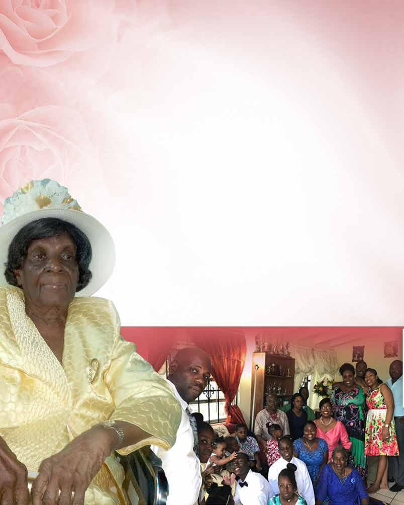 Grand Nieces & Nephews: Marie & Keith Roberts, Sherry Thompson, Celeste & Leonard Cleare, Natasha Storr, Renee, & Mr. & Mrs. Felipe Major, Michelle Smith, Andre & Shasta Major, Tony and Marcus Major, Craig, Jeffery, Steve and Yvonne Thompson, Alvin Storr, Woodron Lowe, Drexel, Hendrick, Emery Curry, Zorene, Adrian & Keisha Curry, John Jr. Jonavon, Johnette, Nikeya and Christopher Curry, Mikhal, Mikhala and Miguel Bullard;