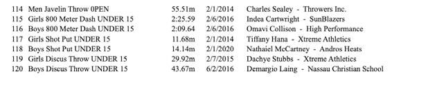 CARIFTA qualifiers in the Under 17 Girls age group includes the likes of Shayann Demeritte, Darvinique Dean, Bayli Major, Yulianis Akompi, Grace Komolafe, Terrell McCoy, Taysha Stubbs and Kamera Strachan. Andrew Brown is the lone qualifier so far in the Under 17 Boys age group after reaching the CARIFTA qualifying mark in the 400M in a time of 49.41 seconds to go under the qualifying time of 49.42 seconds easily winning the finals at the Sonja Knowles Classic this past weekend. Qualifying in the Under 20 Girls group is Shatalya Dorsett, Cassie Thompson, Amari Pratt, Javonya Valcourt and Lacarthea Cooper on the track. Annae Mackey and Calea Jackson also made the qualifying marks in shot put and discus respectively. Amari is the lone qualifier for the host club, however they have several other athletes who are vying for spots on this year’s CARIFTA team.