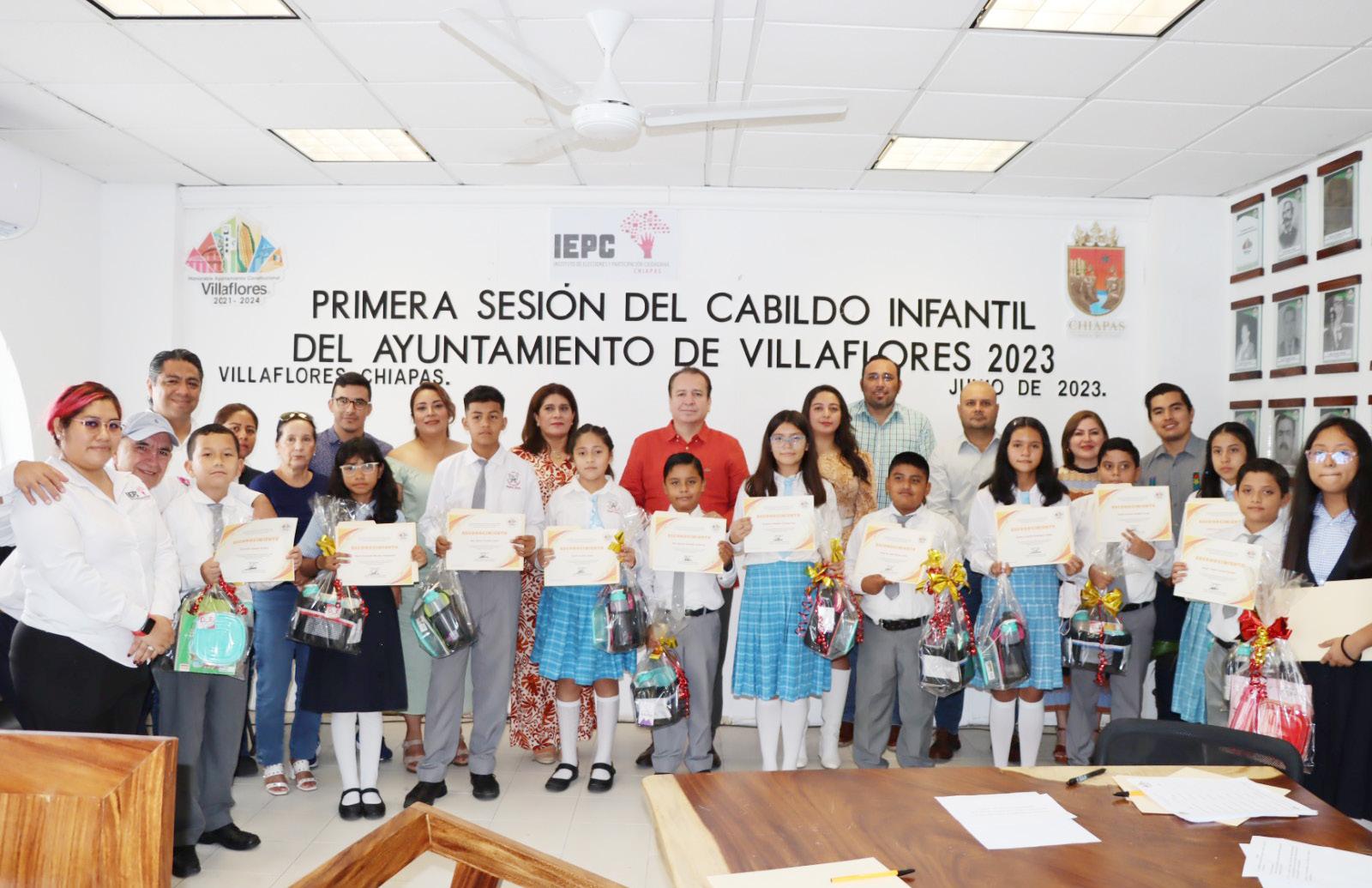 Villaflores.- Para fomentar la participación de niñas y niños en la vida política del municipio de Villaflores, el Ayuntamiento que encabeza el alcalde Mariano Rosales Zuarth y el IEPC Chiapas, realizaron la primera sesión ordinaria del Cabildo Infantil 2023.