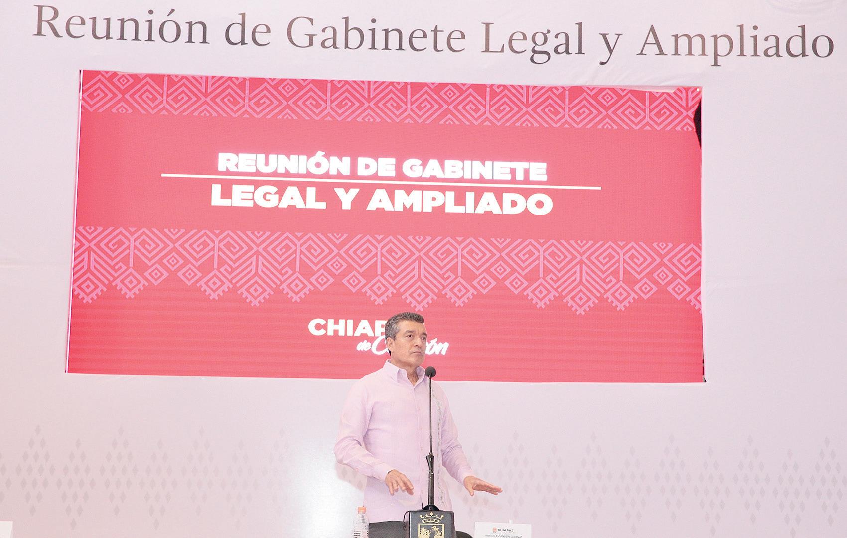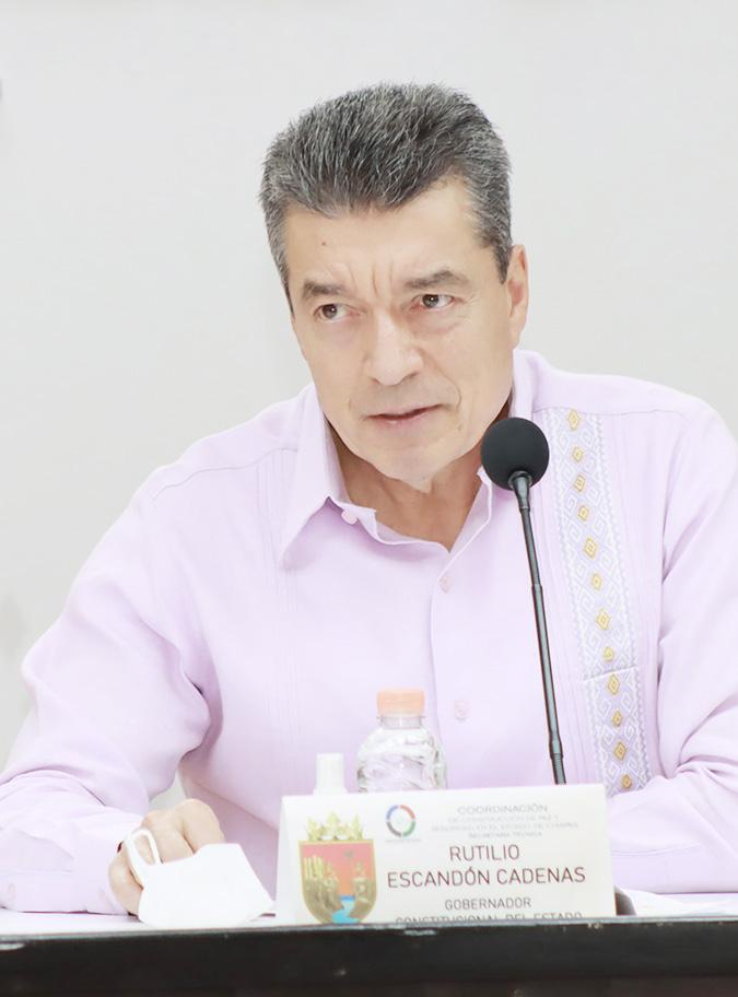 Tuxtla.- Durante la Mesa de Coordina ción Estatal para la Construcción de la Paz y la Seguridad, el gobernador Rutilio Escandón Cadenas destacó que Chiapas va bien en materia de se guridad, justicia y Estado de derecho, gracias al comportamiento responsable y resiliente del pueblo, así como al tra bajo en unidad y comprometido de las