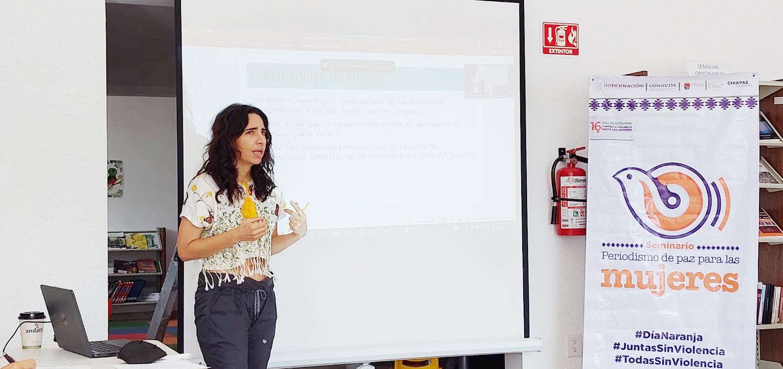 Comunicación e Información de la Mujer AC (CIMAC), presentó a la autora Lydiette Carrión, periodista y facilitadora del módulo 1 del semi nario, en la Casa de la Cultura Co razón Borraz de Tuxtla Gutiérrez. En 2011, Lydiette había decidido que no quería estar 100 por cien to en un periódico y comenzó a trabajar colaboraciones. Entonces aceptó un proyecto para publicar un