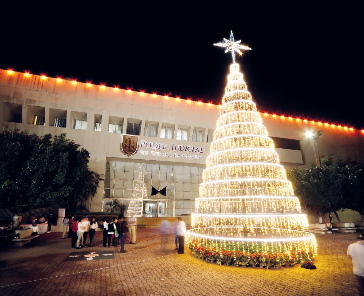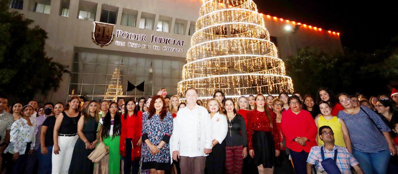 Tuxtla.- El Voluntariado del Poder Judicial del Estado, que preside Josefa Sangeado Camacho, reunió a la gran familia judicial en la expla nada del Asta Bandera, que se en cuentra en la fachada principal del Palacio de Justicia en Tuxtla Gutié rrez, para llevar a cabo el encendido de la luminaria y del magno árbol de Navidad.