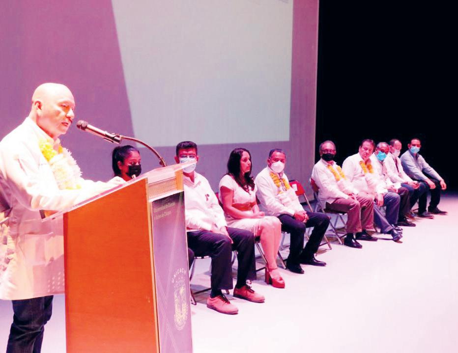 Tuxtla .- Nunca se había visto en Chiapas el involucramiento de to das las universidades públicas y privadas en las acciones del sector salud para promover el autocuida do de la comunidad estudiantil y la generación de entornos saluda bles, dos ejes importantes dentro del nuevo modelo de salud que impulsa la Cuarta Transformación para mejorar la calidad de vida de la población, aseguró el secretario del ramo, doctor Pepe Cruz. Al asistir a la presentación del pri mer informe de actividades de la Red Chiapaneca de Universidades Laborales y Saludables, que presi de el rector de la Universidad “Pa blo Guardado Chávez” (UPGCh), Enoch García Fernández, el encar gado de la política sanitaria a nivel estatal destacó que, por primera vez, la comunidad estudiantil de 314 instituciones de nivel superior