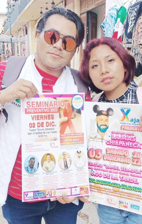 SCLC.- Derivado del incremento de índices de VIH, el colectivo Xajaw y la coordinación de VIH/Sida de la región Tsotsil-Tseltal de Salud en la Zona Altos, llevará a cabo este 2 y 3 de diciembre un Seminario Preventivo y el concurso Drag, denominado “ La más Chiapaneca “, según dieron a conocer sus organizadores Cecilia Pérez Diego y Nano Cortés.