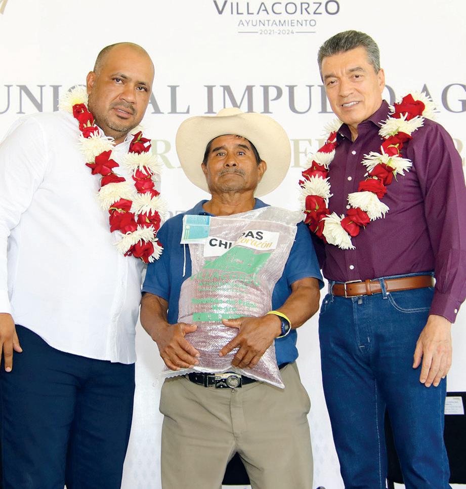 garantiza la alimentación, sino que genera empleos para la gente. Por ello, me siento contento de constatar los apoyos permanentes que recibe el pueblo de Villaflores, desde fertilizantes, semillas mejoradas, insumos para el campo, apoyos para la ganadería, aves de corral y de traspatio”, apuntó.