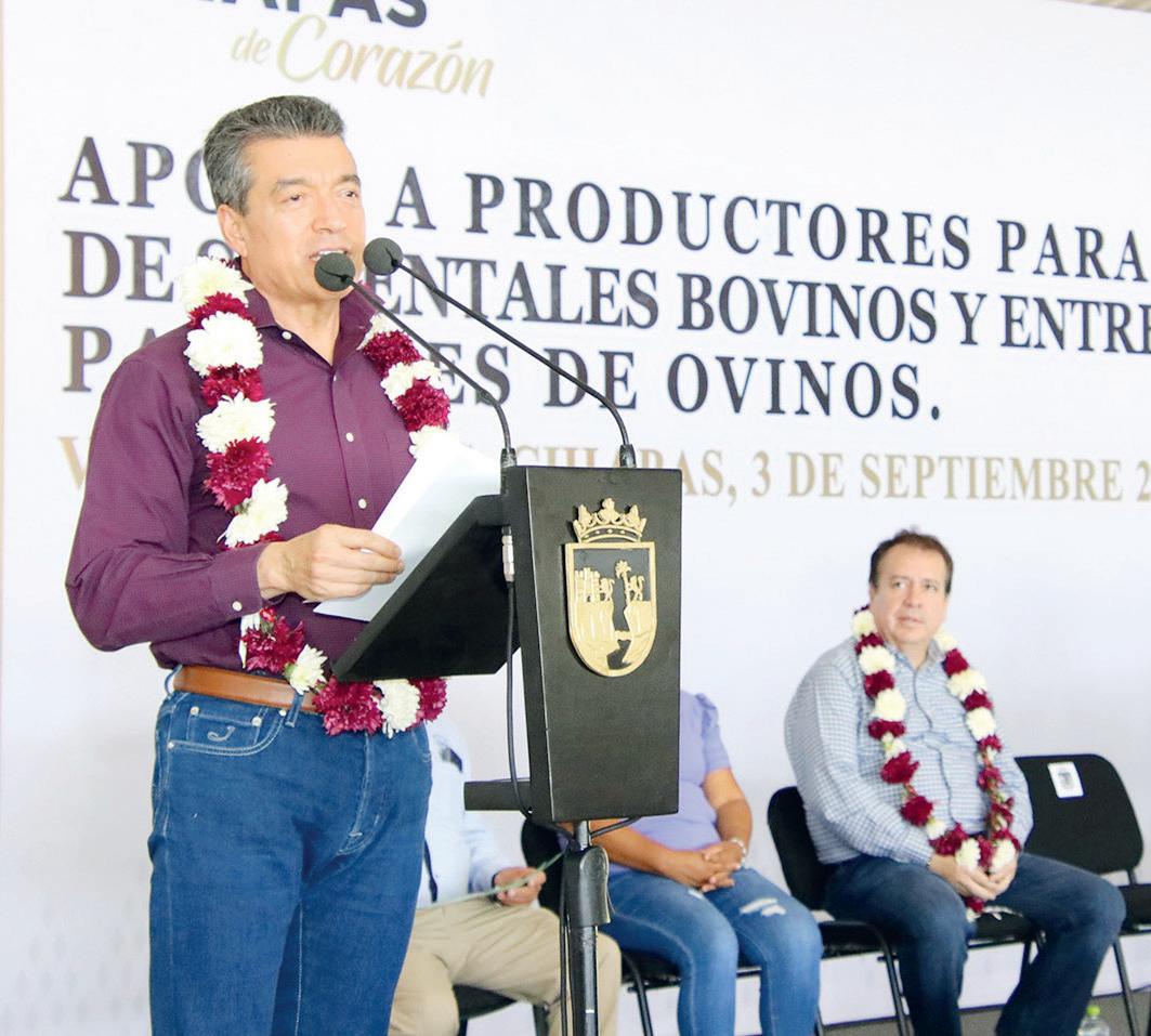 “Con el ejemplo del presidente Andrés Manuel López Obrador, en Chiapas seguimos haciendo justicia social y garantizando una mejor calidad de vida a la gente, mediante el fortalecimiento de la ganadería, una de las actividades productivas más importantes, porque no sólo
