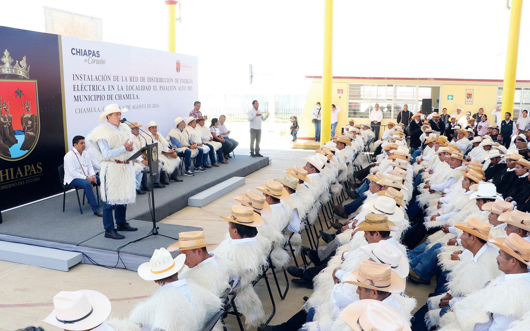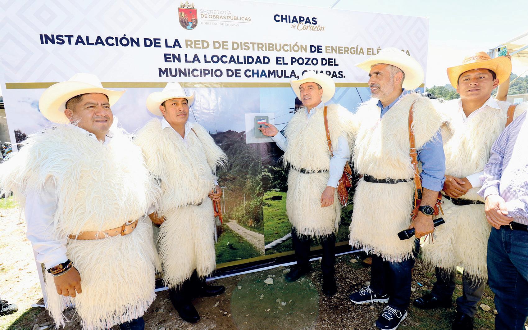 En Chamula, inaugura Rutilio Escandón instalación de red de distribución de energía eléctrica en la localidad El Pozo