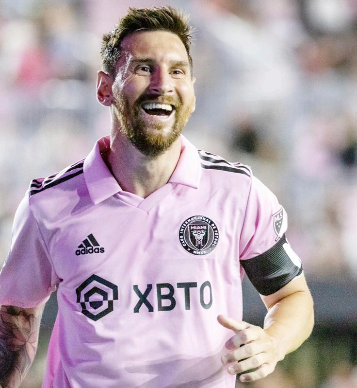 pañado por los gritos y, por tercera vez en tres partidos de titular, Messi tardó menos de ocho minutos para poner su firma en el partido. Adelantó al Inter Miami con un perfecto zurdazo curvado desde el límite del área tras una combinación con Alba vista infinitas veces en el Barcelona.