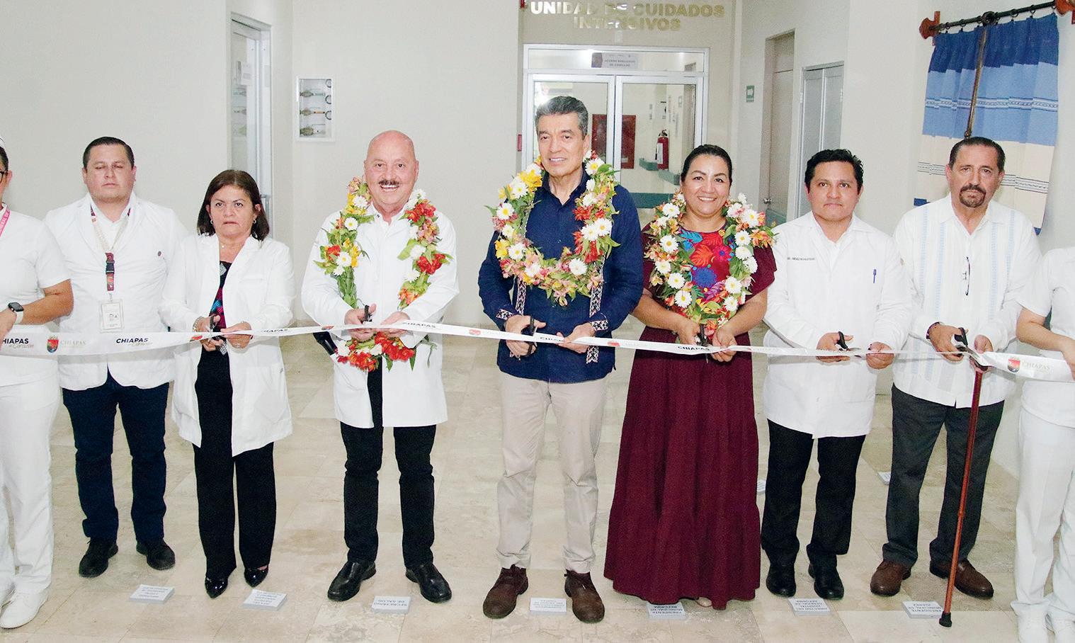 Tuxtla.- Como parte de las acciones para el fortalecimiento a los servicios hospitalarios de Chiapas, el gobernador Rutilio Escandón Cadenas inauguró la Unidad de Cuidados Intensivos del Hospital General del municipio de Reforma, donde refrendó su compromiso de seguir transformado los servicios de salud e invertir hasta donde sea posible para que las unidades médicas de la entidad cuenten con la capacidad resolutiva eficiente, oportuna y cercana a la gente.