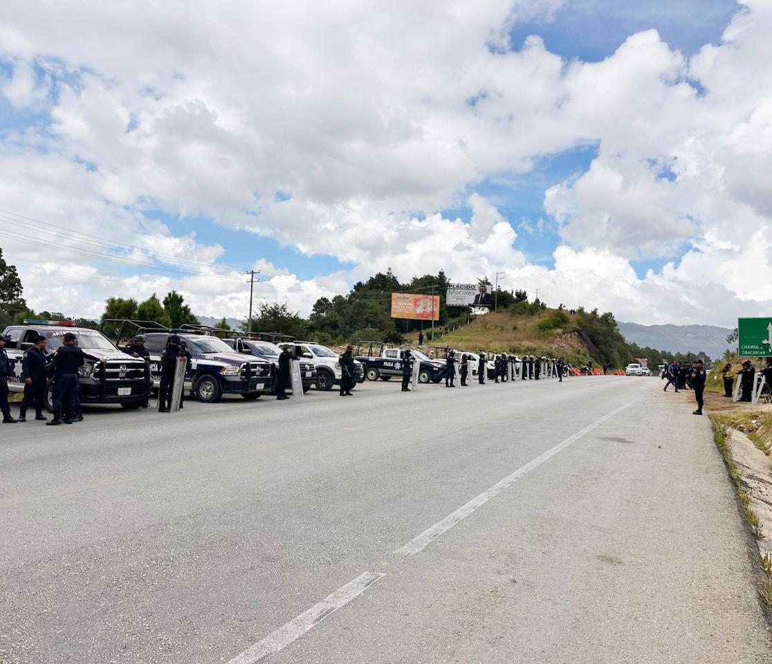 to para mantener el estado de Derecho, en caso de ser necesario. Es de mencionar que los Normalistas buscaban llegar a la capital Tuxtla Gutiérrez, para instalar un plantón Frente a Palacio de Gobierno, con la finalidad de que se cumplan algunas demandas, entre ellas que les sigan garantizando el transporte público de San Cristóbal a Zinacantán, donde está ubicada la escuela.