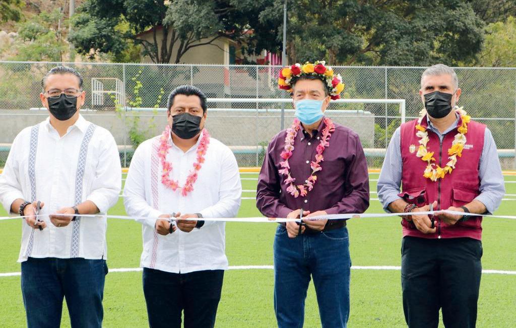venes que, por muchos años, han jugado en piso de tierra. “Gracias al gobernador y a sus colaboradores, son bienvenidos y esperamos seguir cosechando obras de la Cuarta Transformación”.